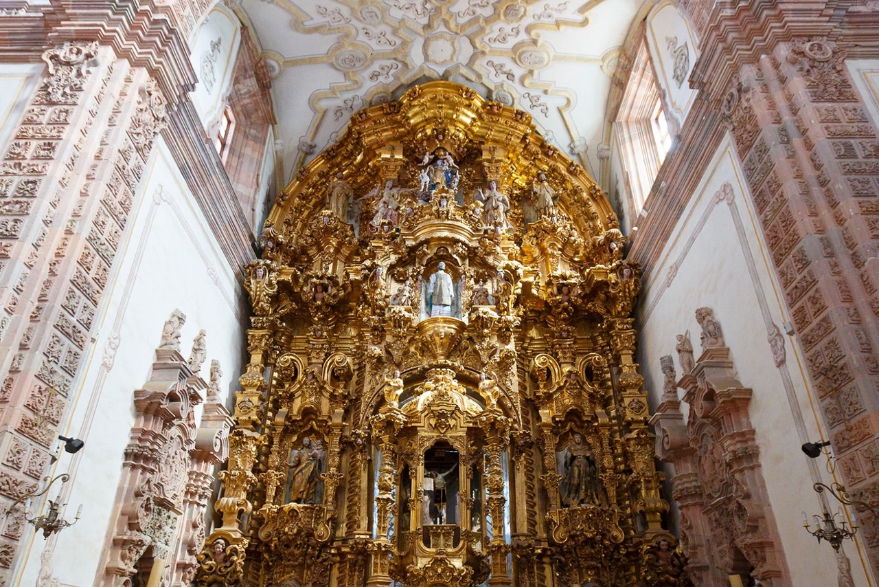 En su interior se resguardan tres retablos de madera tallados a mano que se encuentran cubiertos de oro, un recordatorio de la opulencia de aquella época. Este tipo de arquitectura nos deja asombrados por la minuciosidad de cada elemento que lo conforma.